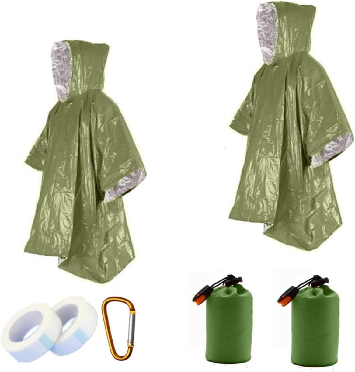 Contenu de la livraison : 2 poncho, 2 poches à faisceau, 2 sifflets, 2 ruban, 1 boucle d’alpinisme, 1 emballage