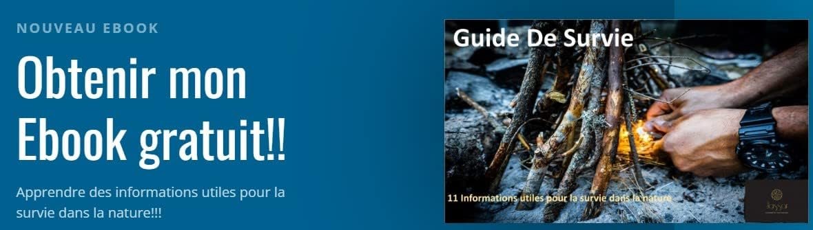 Un E-BOOK « Guide De Survie » est offert pour vous permettre de devenir un champion du survivalisme !!!