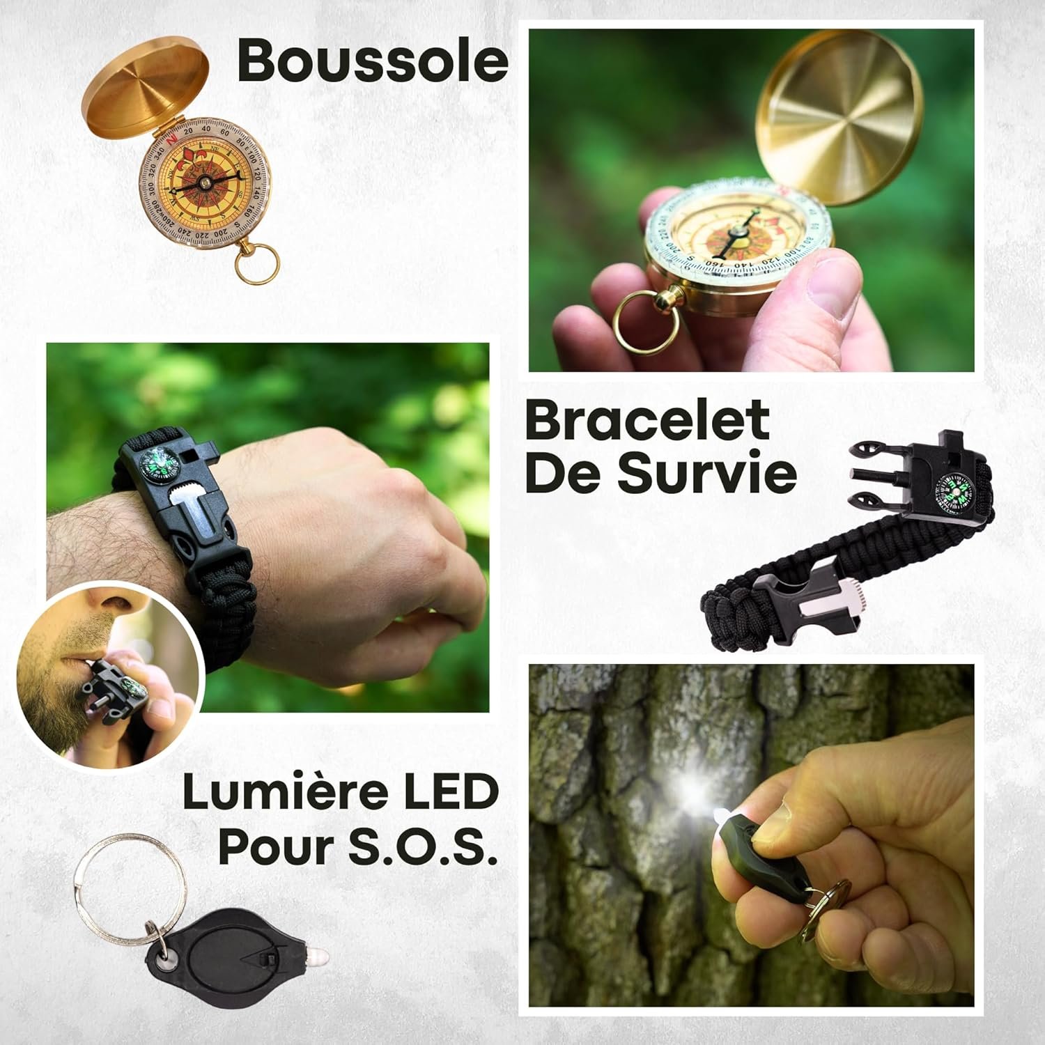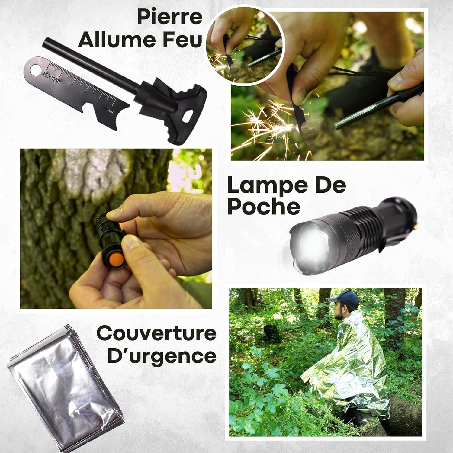 Offrez-vous ce kit de survie professionnel pour vous-même, votre famille ou vos amis, et profitez d’un voyage et d’une aventure plus détendus et plus sûrs.